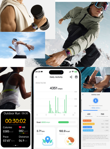 • Step counting, calories burned, distance tracking